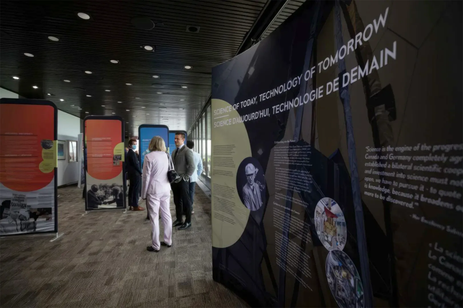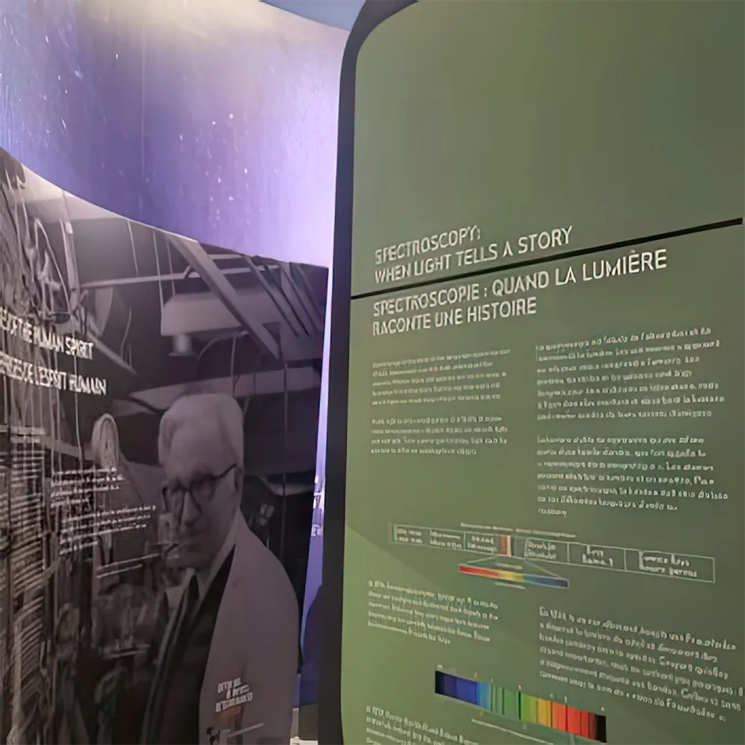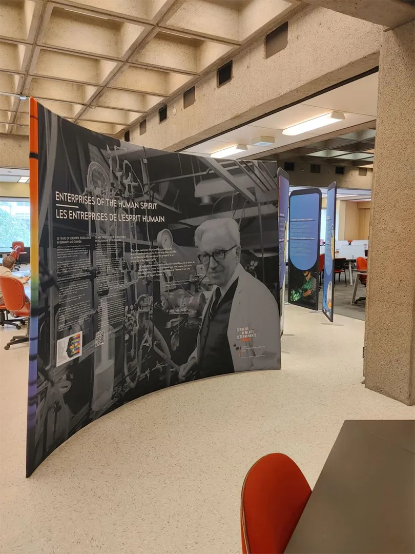 In 2021, Blue Rhino Design was contracted by Defining Moments Canada to design and produce a travelling exhibit honouring the life and work of Gerhard Herzberg to commemorate the 50th anniversary of his Nobel Prize in chemistry.