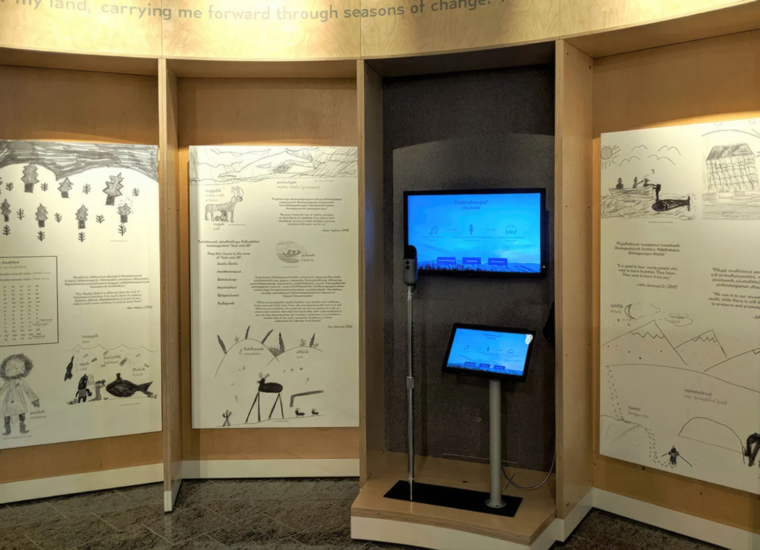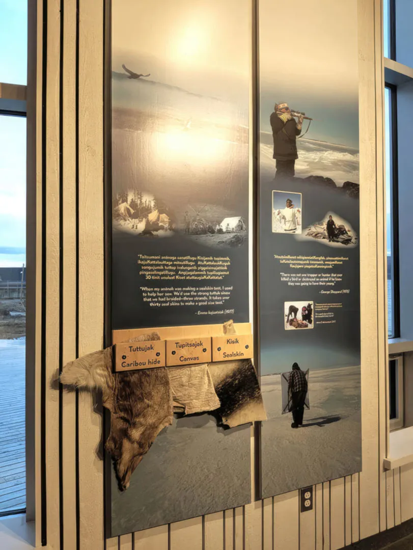 Exhibits include first person historical accounts; contemporary and traditional arts, crafts, and activities; family photos; Inuttitut language games; archaeological objects and history; and more. Everything was delivered in the voice of Labrador Inuit and presented in an aesthetic style that reflected their historical homeland.