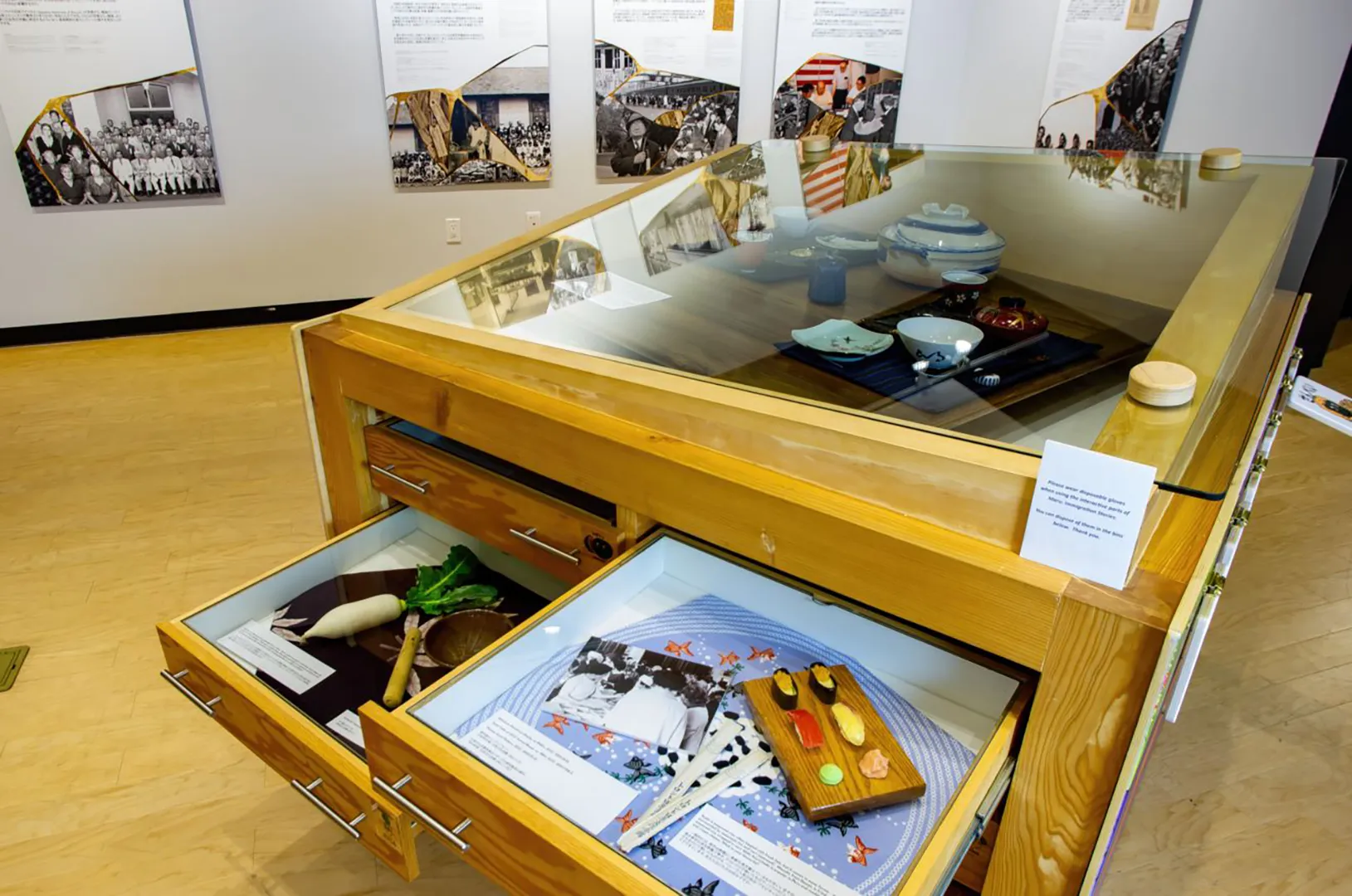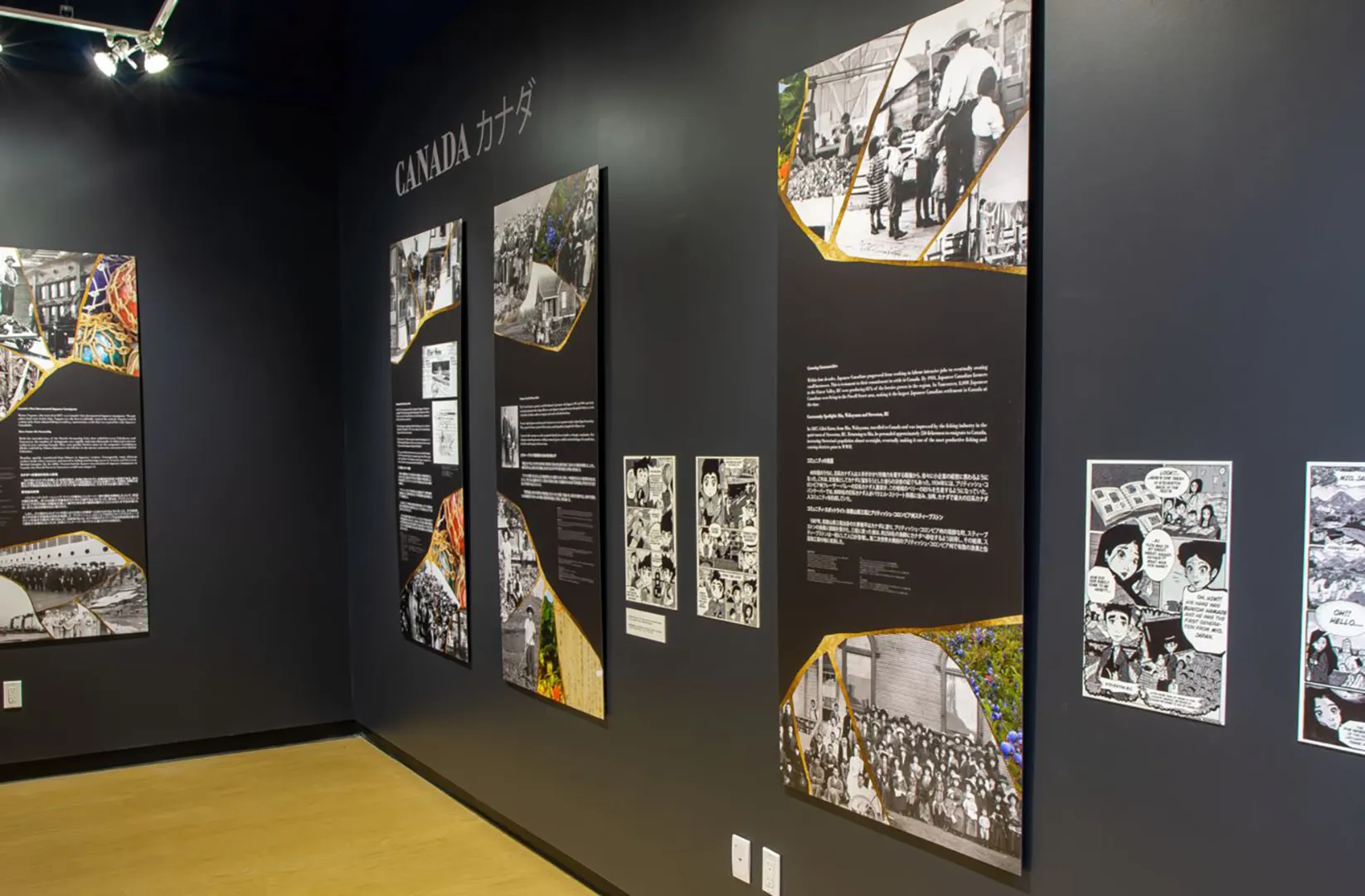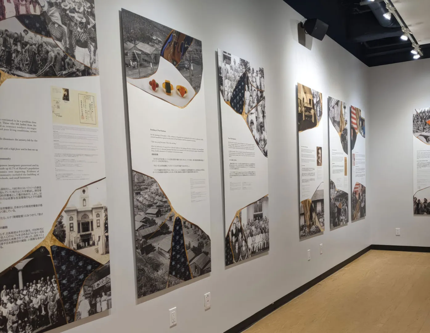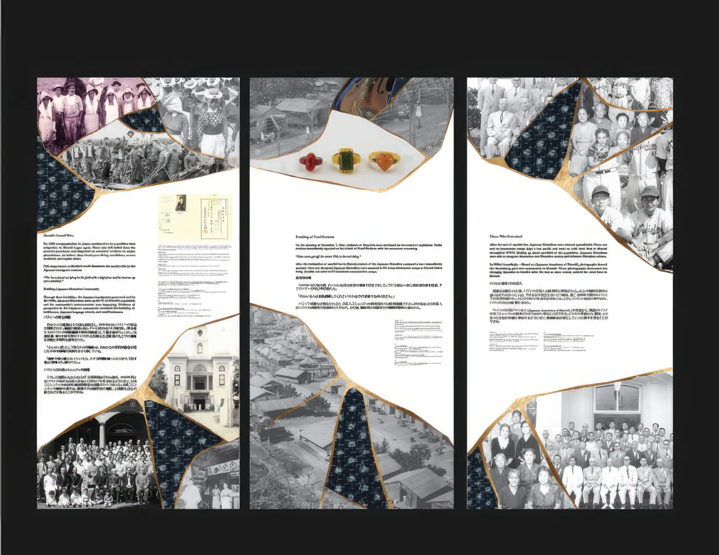 Our designers developed a series of wall-height graphic panels that referenced the visual language of Kintsugi, the Japanese art of repairing broken pottery by mending it with gold, to show how the Japanese diaspora, although dispersed, is also whole. To tell the stories, Blue Rhino Design drew from the rich archives of the JCCC, and integrated Japanese and English text throughout. We also provided interpretive writing and interior design services.